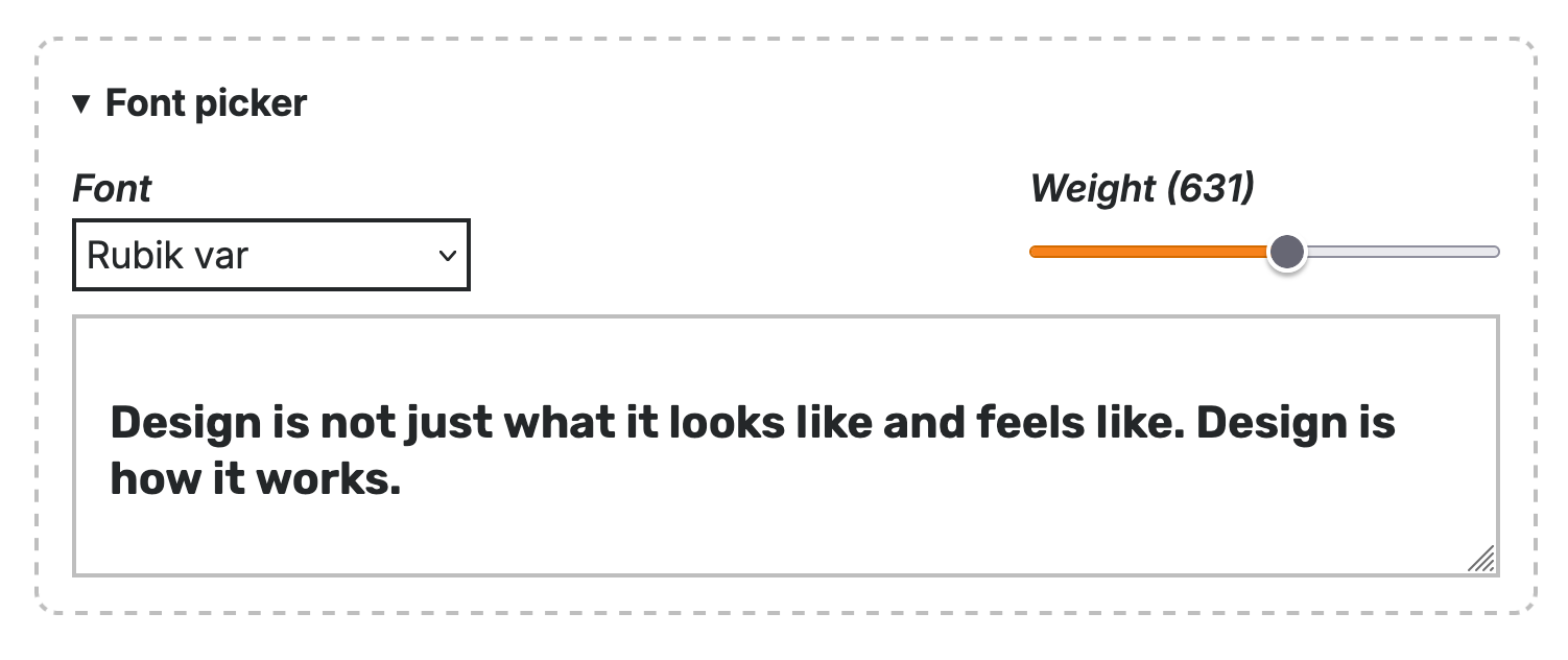 Screenshot of a website form to pick a font and weight that is set on a specimen text below it